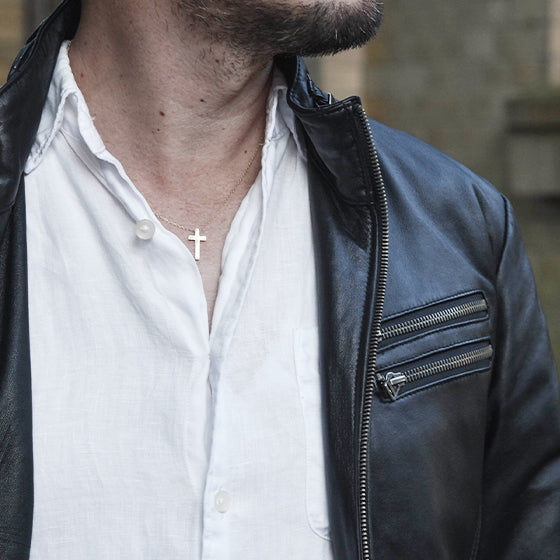 ロッソエブルージュエリーでは、クロスの縦横比や厚みまで一つ一つ丁寧に設計・製作。 30代〜60代まで幅広い世代に支持され、誕生日・記念日・父の日・クリスマスなどのギフトにも人気。 大人カジュアルを格上げするジュエリーとして、毎日身に着けたくなる一本です。