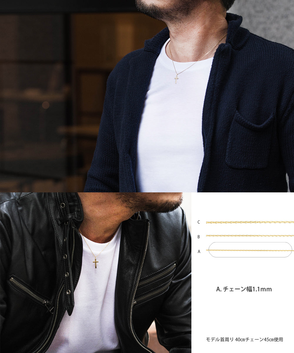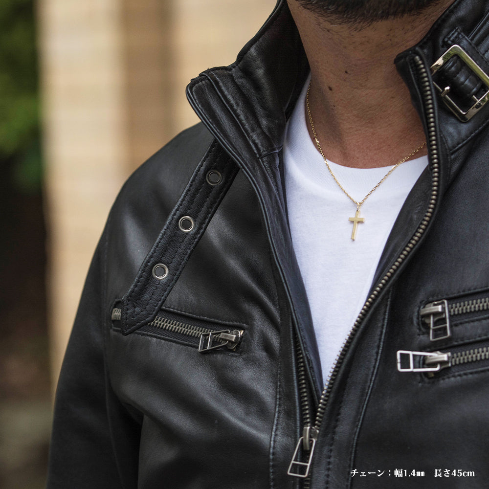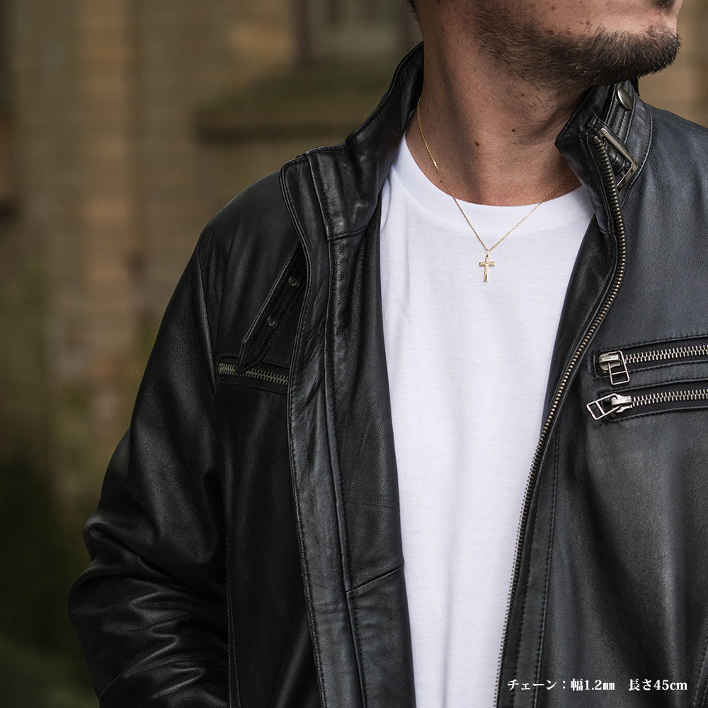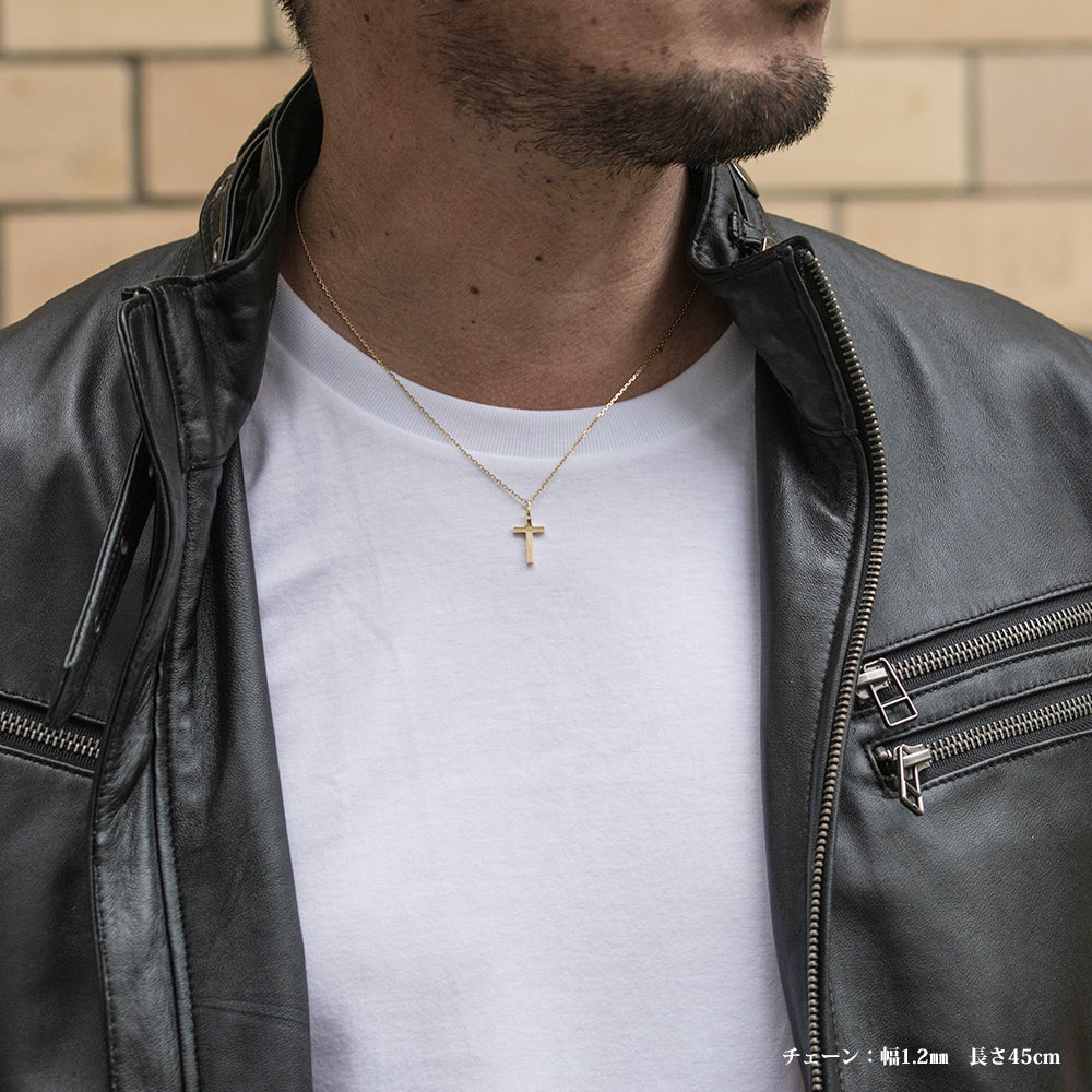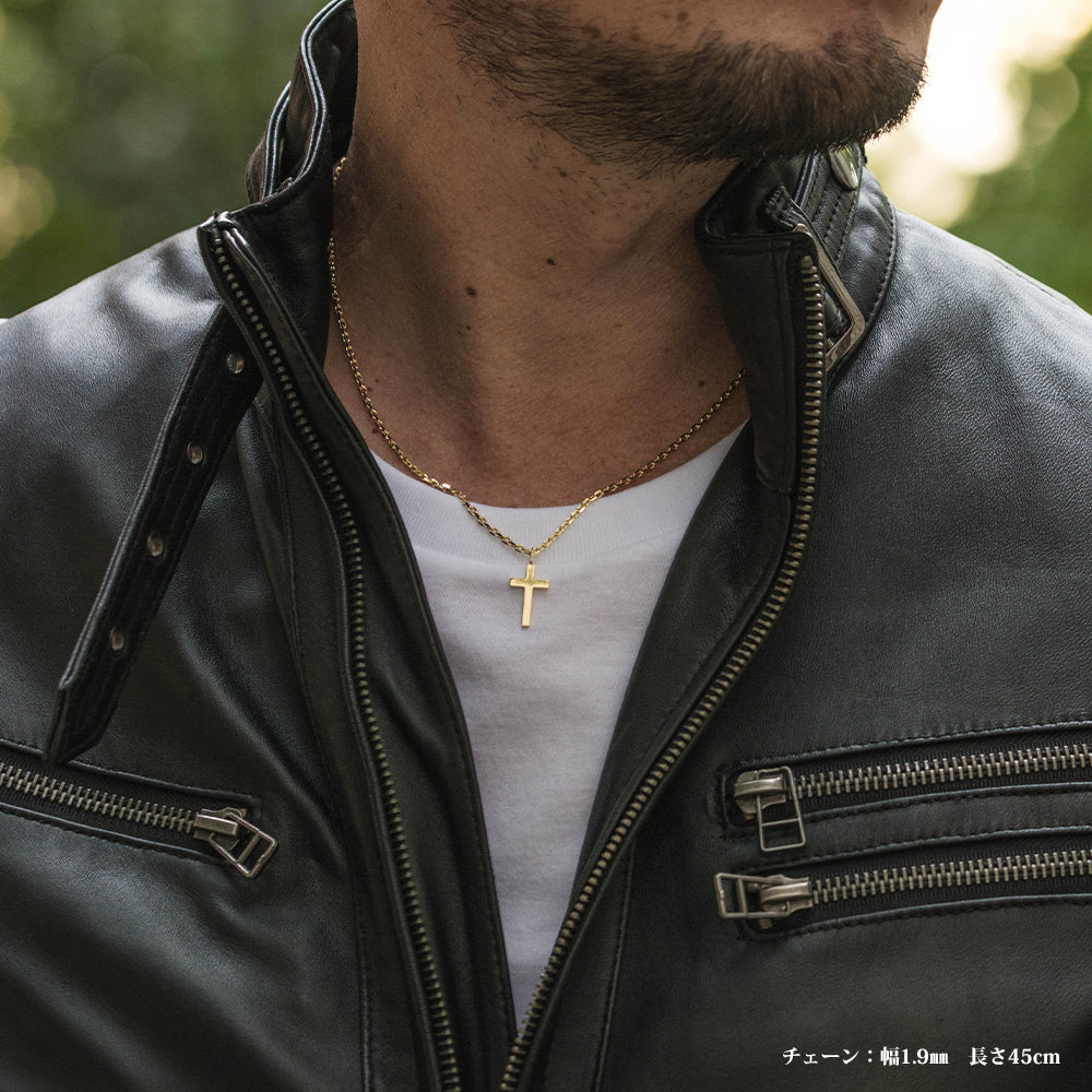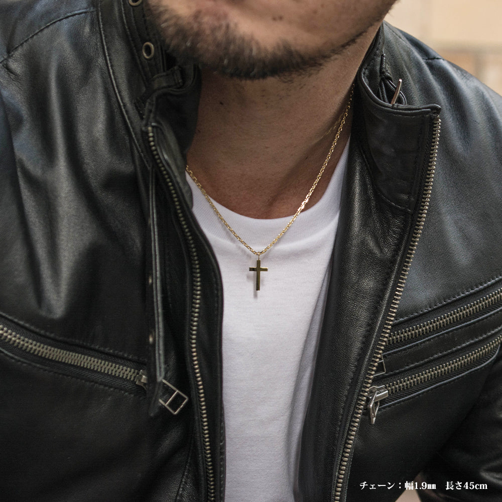 【選べるチェーン幅&長さ】18金ゴールド メンズクロスネックレス|お守りジュエリー