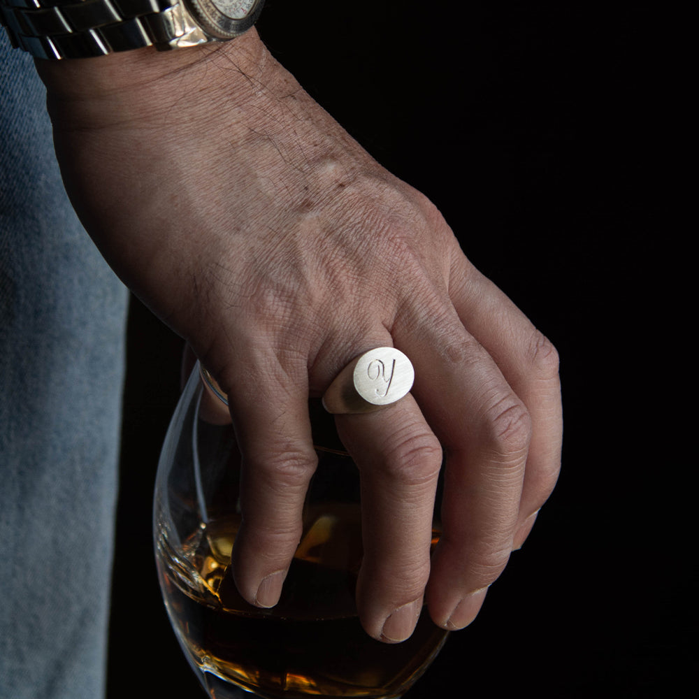 signet ring 16~22号 メンズ シグネットリング インダイリング 横丸 シルバー925 指輪 / イニシャル オーダー プッシュギフト